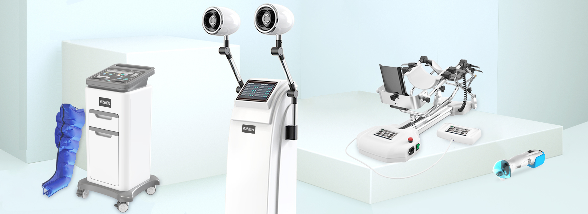 下肢關節(jié)康復器,關節(jié)持續(xù)被動活動儀,空氣壓力波治療儀,智能多功能按摩儀,中頻電療儀,頸腰椎牽引裝置,氣壓彈道式體外壓力波治療儀,冷空氣治療儀,熏蒸治療儀